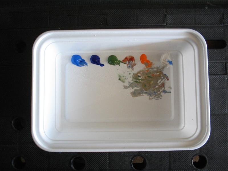 After six long years of scraping this black mold off the paper palette, and dealing with diluted paint, I started experimenting with different ideas I came up with as I painted. I won't mention any brand names in particular, but there are various types and models of these "sponge and paper" palette configurations from different manufacturers presently available in most art supply stores.